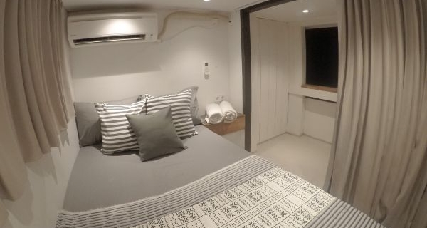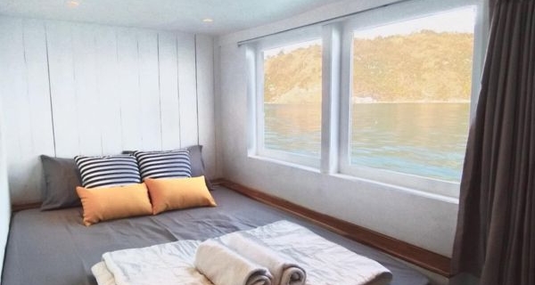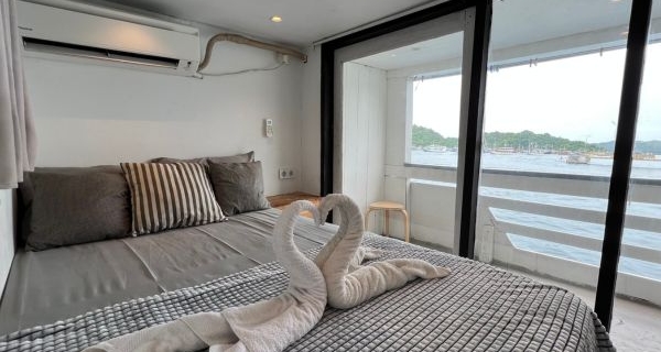 Cabaña privada | Cabaña privada Cama doble (2 personas) Acondicionador de aire Vista de ventana Ducha y baño compartidos Toallas, jabón y champú Ubicado en la cubierta principal PRECIO IDR 3.400.000 / persona Reserva mínima 2 personas *Pasajero adicional (niño máximo 8 años sin cama) IDR 2.100.000 / persona [*1] |
